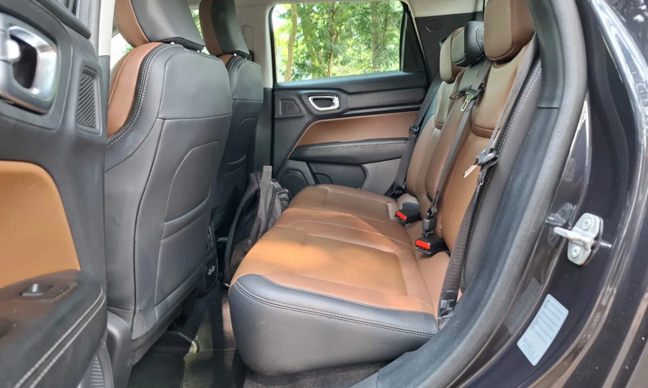 Por ter 1,87 m de altura, eu fico apertado na segunda fileira se o banco da frente está ajustado na minha posição. Quem for menor, vai ter mais espaço, mas o encosto bastante reto do banco traseiro compromete o conforto. Ao menos há saída de ar e quatro portas USB para os ocupantes da segunda fileira: duas USB-C e duas USB-A.