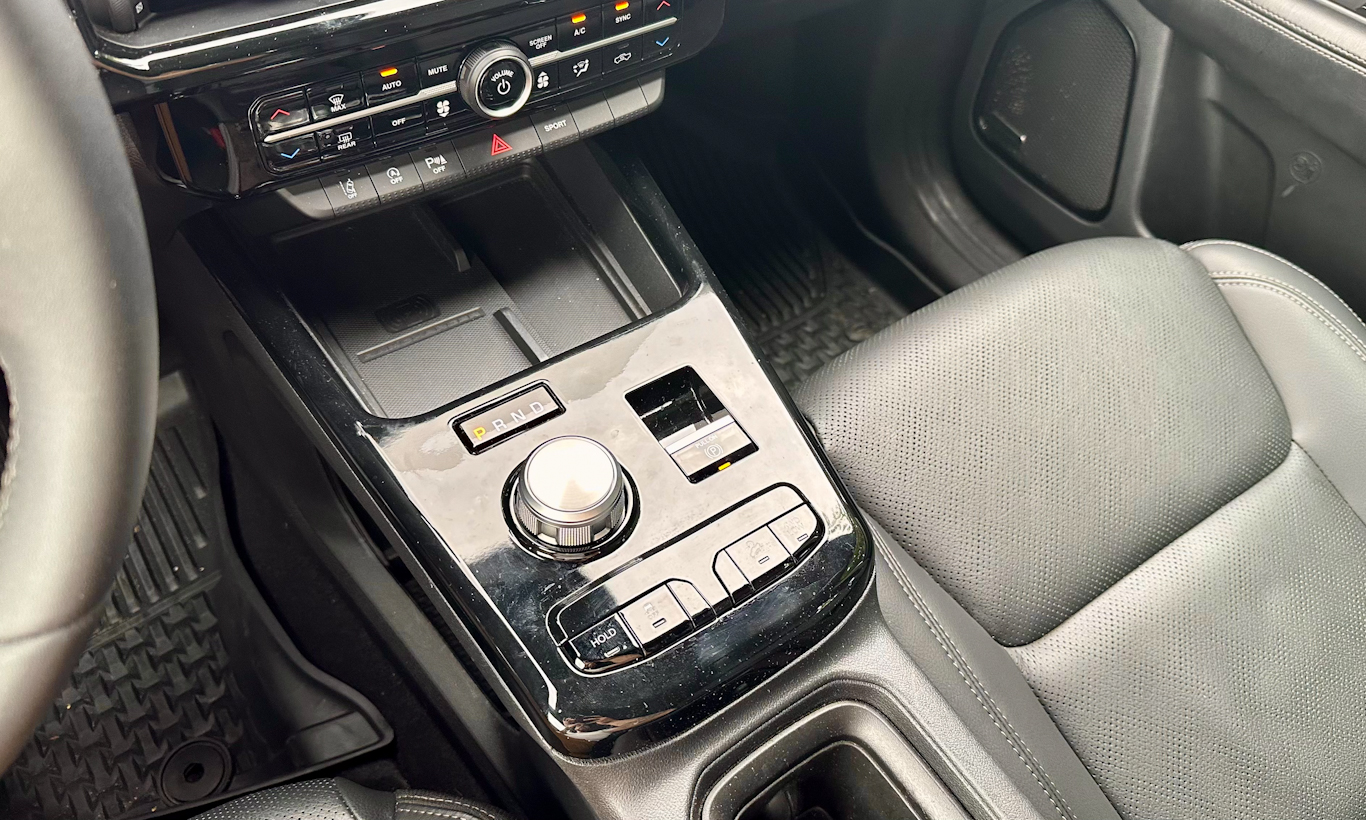 Isso possibilitou que a Ram tivesse um porta-objetos grande na parte inferior, ótimo para conectar e esconder o celular. O porta-copos é pequeno, mas removível, sendo a mesma peça do Fiat Pulse. Já o descanso de braço central é menor que o do Jeep Renegade. Há carregador de celular por indução com saída de ventilação para não esquentar o aparelho.