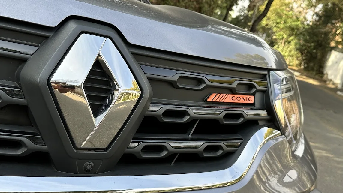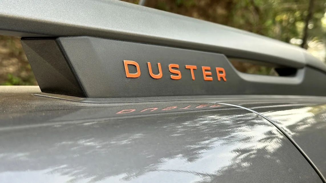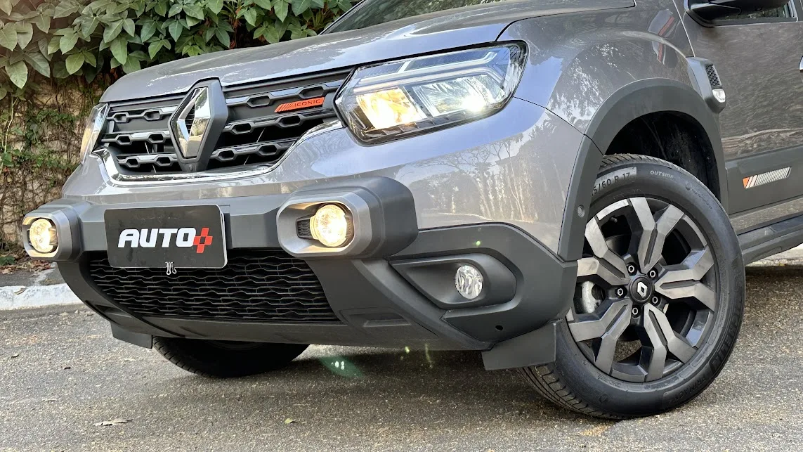 A grade do radiador foi redesenhada, exibindo a inscrição Iconic em laranja, uma tonalidade repetida na faixa da capas dos retrovisores e no nome Duster na base do rack de teto.