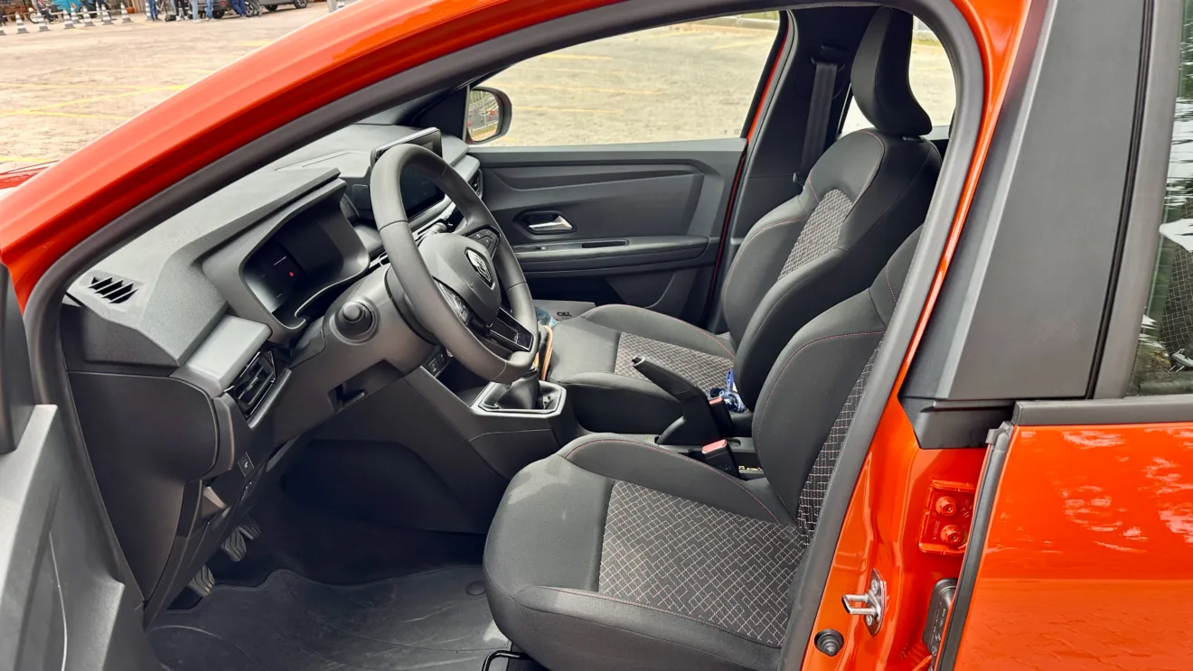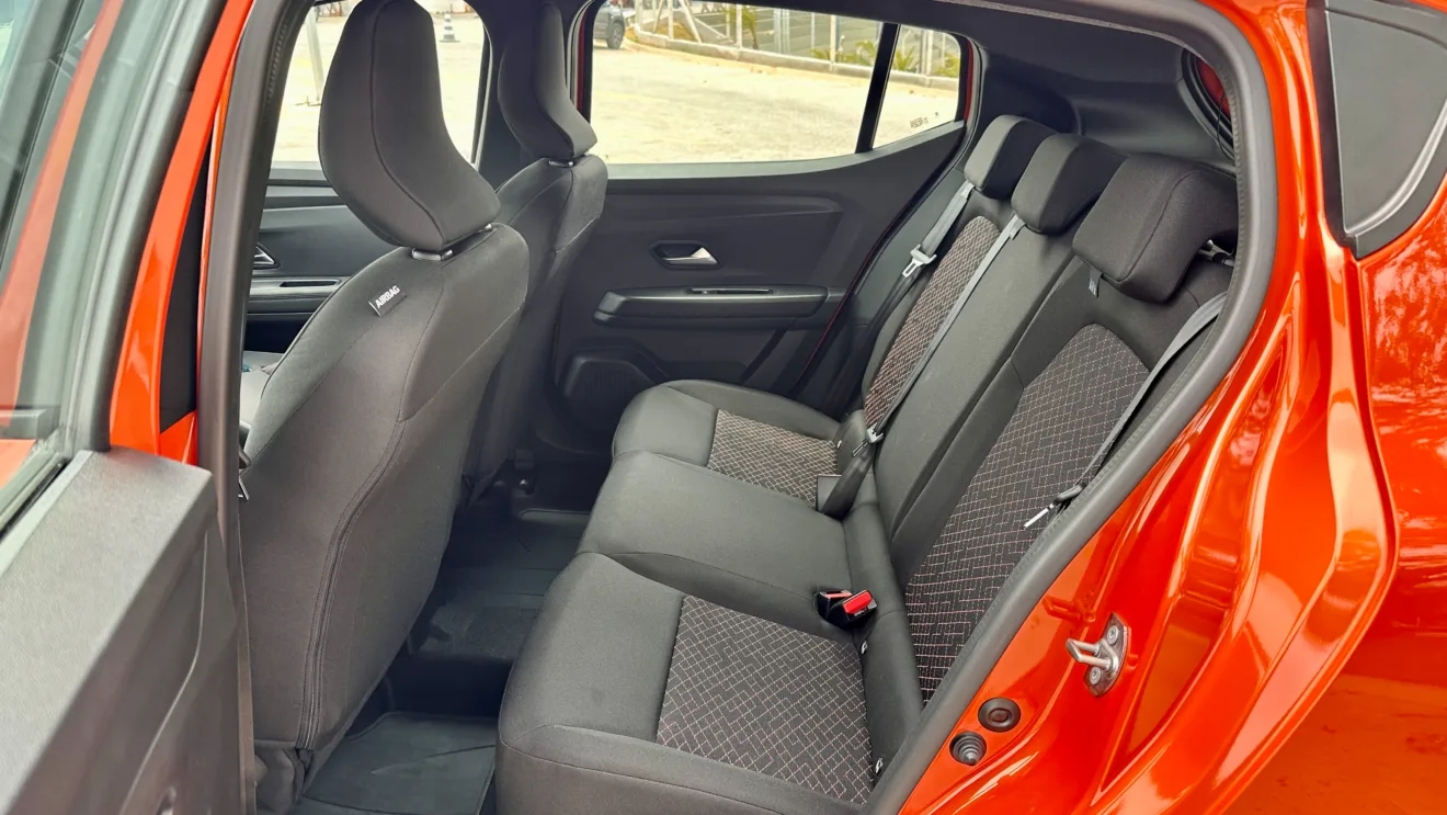 O acabamento é justo, com plásticos duros por todos os cantos, mas bem montados e robustos. Já os bancos, são bem confortáveis e abraçam o motorista. Trazem tecido relativamente simples, mas dentro do esperado para a categoria. Há revestimento de tecido somente nas portas dianteiras, enquanto na traseira é todo de plástico.