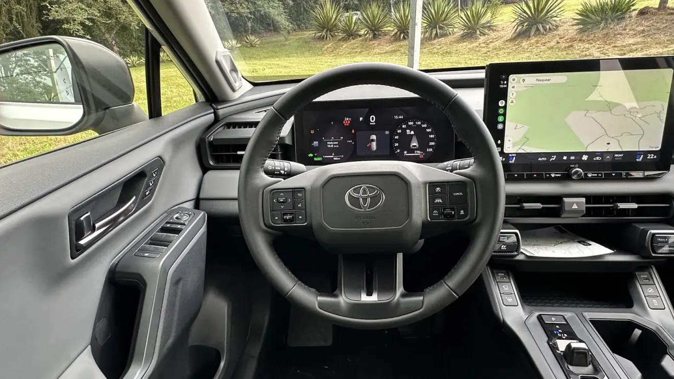 É inegável que o interior ficou mais moderno em relação ao Toyota RAV4 antigo, mas segue agradando pela qualidade dos materiais e arremates precisos empregados ao acabamento. Aliás, a Toyota incluiu o novo multimídia de 12,9 polegadas baseado na plataforma Arene, que possibilita atualizações Over The Air (OTA).