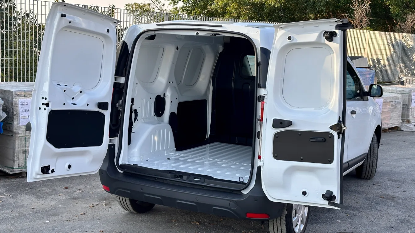 Um dos pontos de gigantesca vantagem do Renault Kangoo frente ao Fiat Fiorino está onde o motorista não fica. O modelo conta com baú traseiro de 3.300 litros com 750 kg de capacidade. Há um vidro para que o motorista veja o que acontece lá atrás, se necessário.