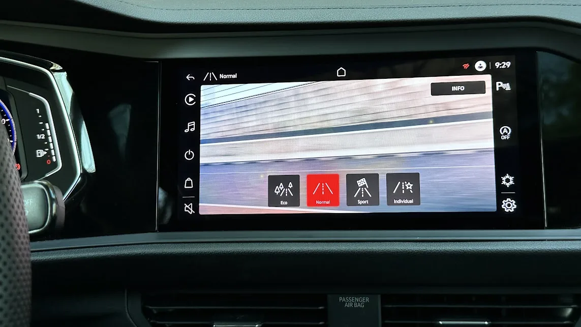 No modo Eco, as reações são mais brandas e voltadas para a eficiência. No modo Sport, o sedã revela todo o seu potencial, transmitindo uma sensação de torque steering, com a dianteira puxando nas acelerações. No uso cotidiano, o sistema Start-Stop funciona suavemente, tanto ao desativar quanto ao ligar o motor EA888.