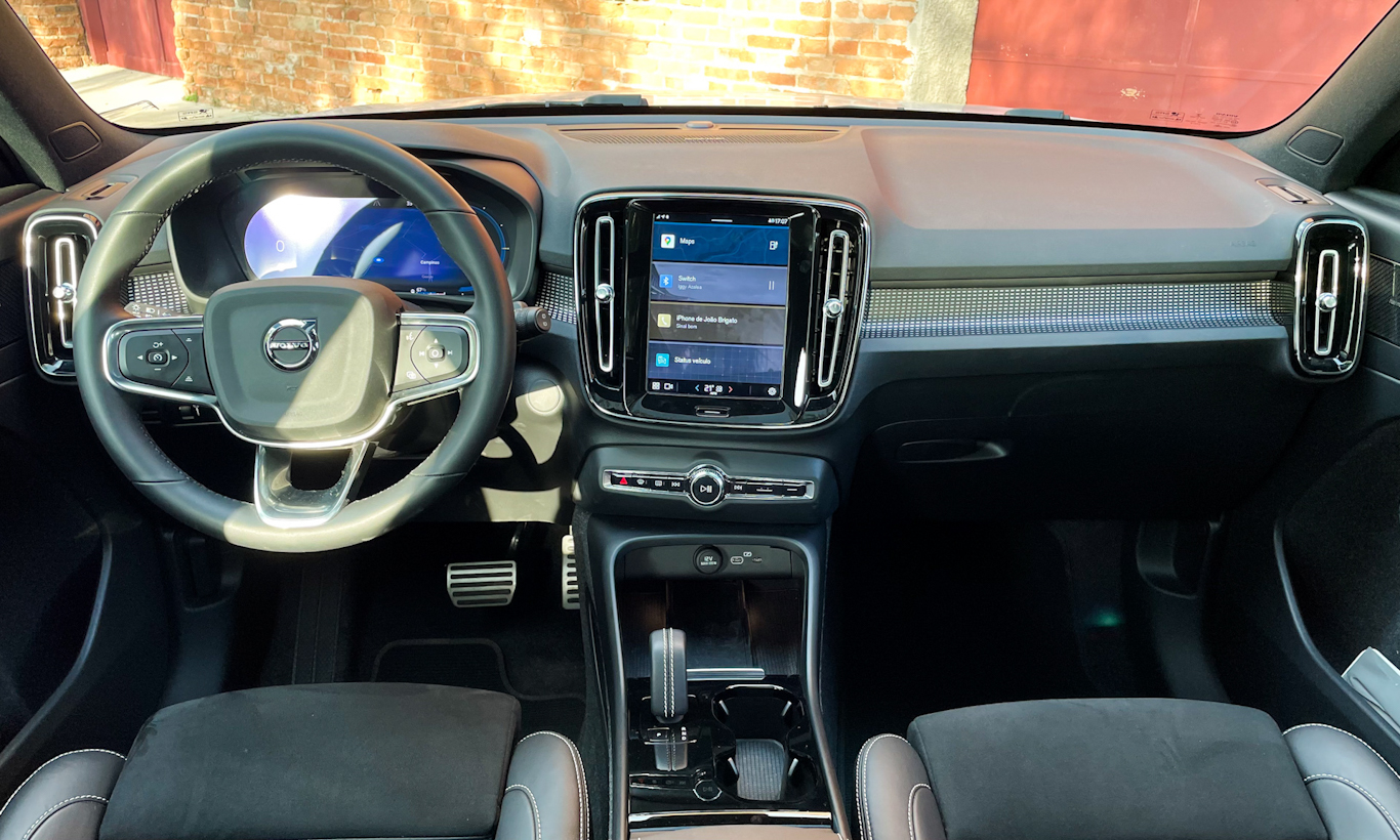 Já a direção é pesadinha na medida certa, mas é rápida e passa bastante confiança em altas velocidades e tranquilidade nas manobras. Por falar em velocidade, o Volvo XC40 elétrico é limitado a 180 km/h, como todo modelo novo da marca sueca. Contudo, ao contrário dos seus irmãos, ele chega à essa velocidade rápido demais e se sente muito bem em permanecer lá.