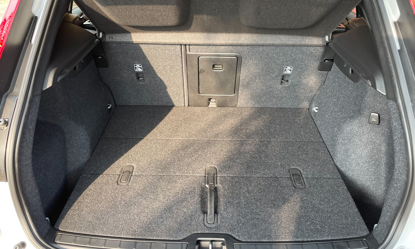 Mas o porta-malas traseiro, com abertura elétrica, é que merece destaque. São 414 litros de capacidade em um piso plano tanto da tampa quanto dos bancos deitados. Ele tem uma prática divisória que, quando armada, separa o espaço em duas metades e ainda traz opção de ganchos para sacolas.