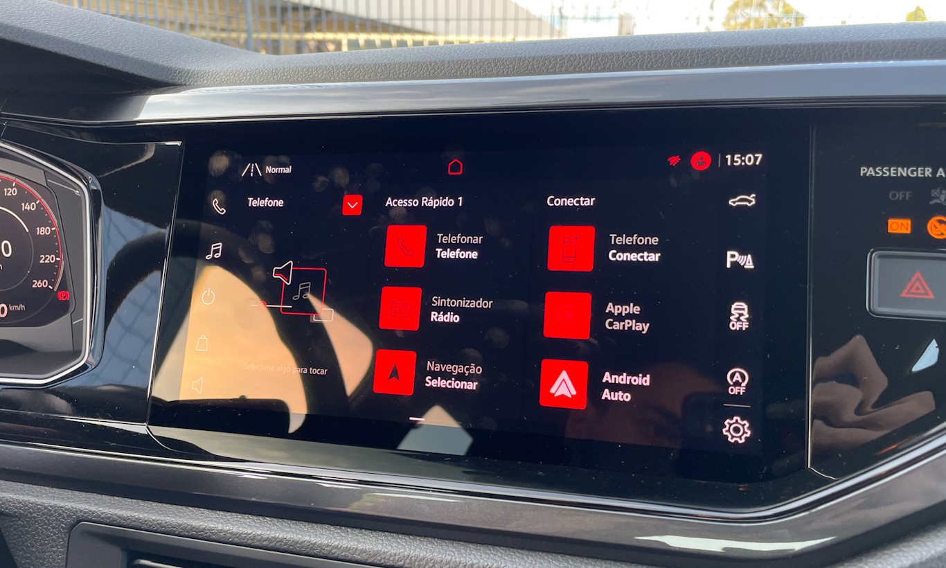 O problema foi que a Volkswagen colocou todos os botões principais embutidos nela. Seletor de modo de condução fica em um submenu da central que te obriga a sair do Android Auto ou do Apple CarPlay (conectados sem fio). Até mesmo o start-stop ou um simples botão de abrir o porta-malas ficam agora na central.