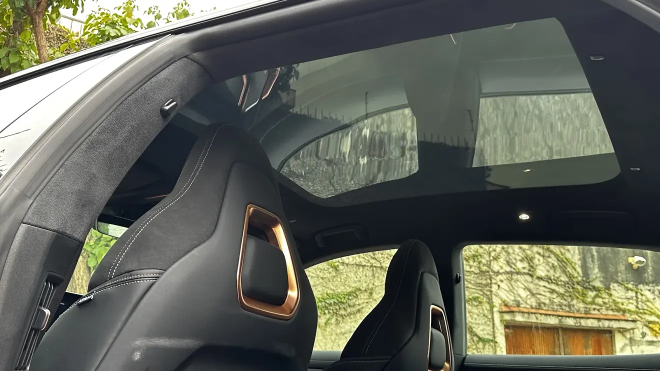 O interior do Zeekr 001 deixa a clara sensação de que o dinheiro foi bem investido. A sensação de amplitude é acentuada pelo teto solar panorâmico, que não possui escotilha, mas pode ser escurecido ou clareado ao gosto do condutor — o mesmo recurso disponível no Porsche Taycan Cross Turismo.