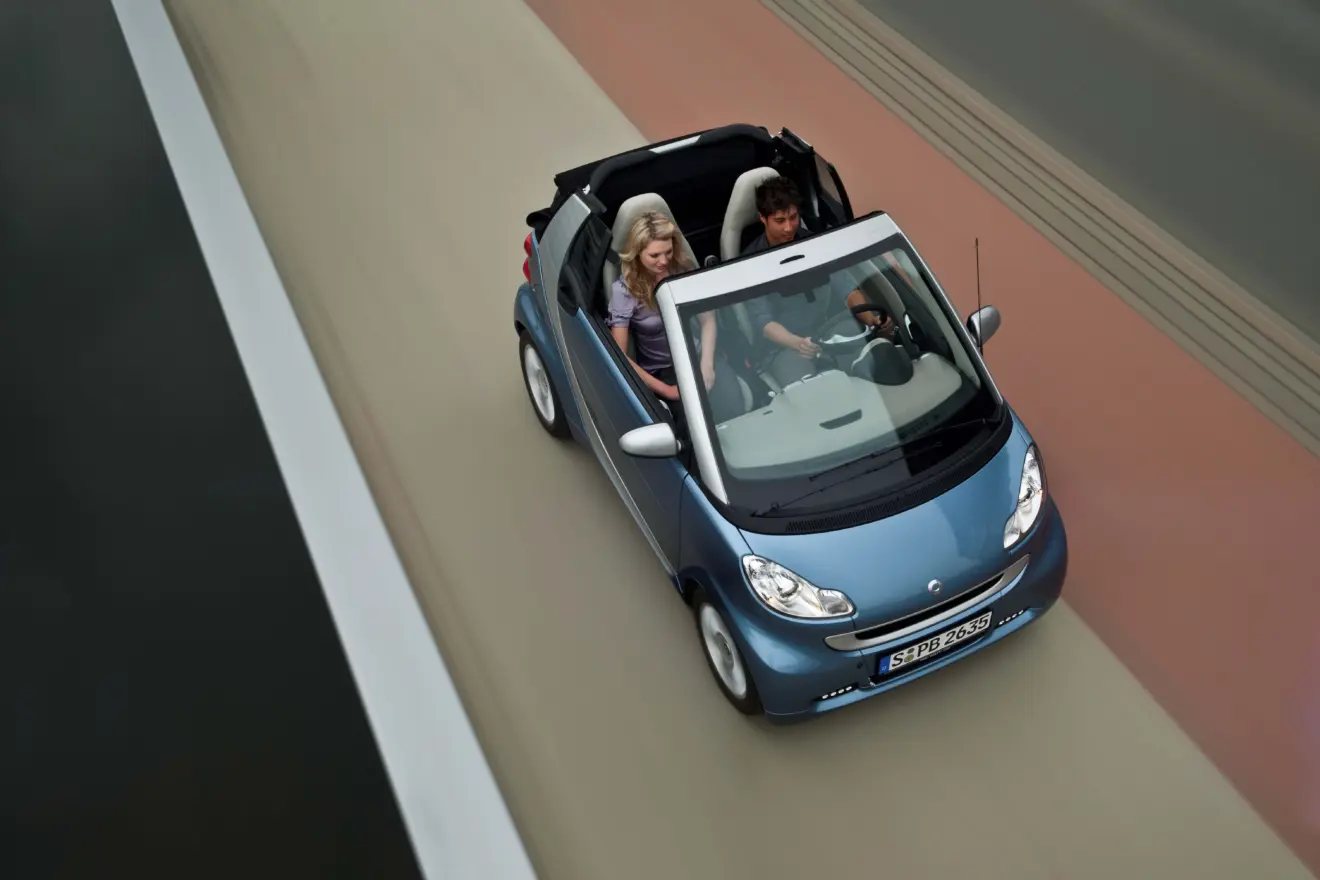 Nada mais apropriado para introduzir o Smart Fortwo, ora. Por que me locomover com um carro tradicional, com alto gasto de combustível e ocupando espaço médio de 8 m2 (4,5 m de comprimento por 1,8 m de largura) na rua se eu só ando sozinho? Ou com mais uma pessoa?