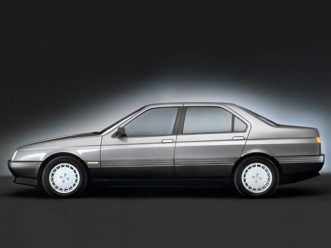 Considerado um dos sedãs executivos mais avançados e à frente do seu tempo, o Alfa Romeo 164 possui 4,55 m de comprimento e 2,66 m de entre-eixos, com a assinatura da Pininfarina visível na região dos para-lamas dianteiros. O estúdio foi responsável pelas linhas majestosas desse sedã de três volumes, que se tornou icônico até hoje.