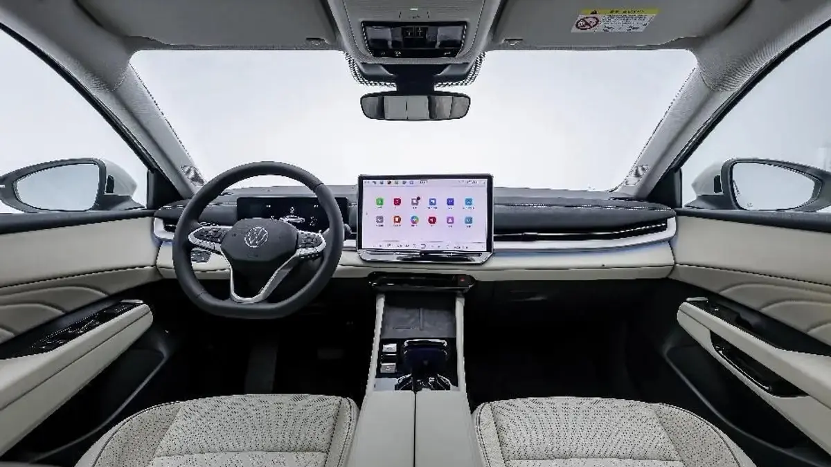 A cabine melhorou consideravelmente em relação ao Jetta. Há uma larga faixa de couro no painel e nas portas. A maçaneta ficou camuflada no apoio de braço, enquanto o painel de instrumentos se transformou em uma tela pequena sem cobertura – bem típica de carros chineses. O volante de Nivus, no entanto, segue lá.