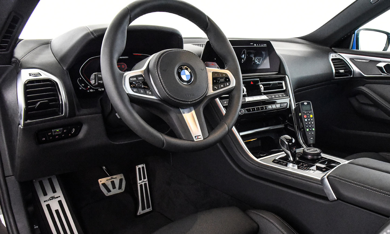 Para dar um visual mais radical, a AC Schnitzer deu a esse Série 8 aerofólio de fibra de carbono, saias laterais e frontal e difusor de escape modificado. A farda foi vestida com as cores azul e amarelo neon na carroceria pintada em prata.
