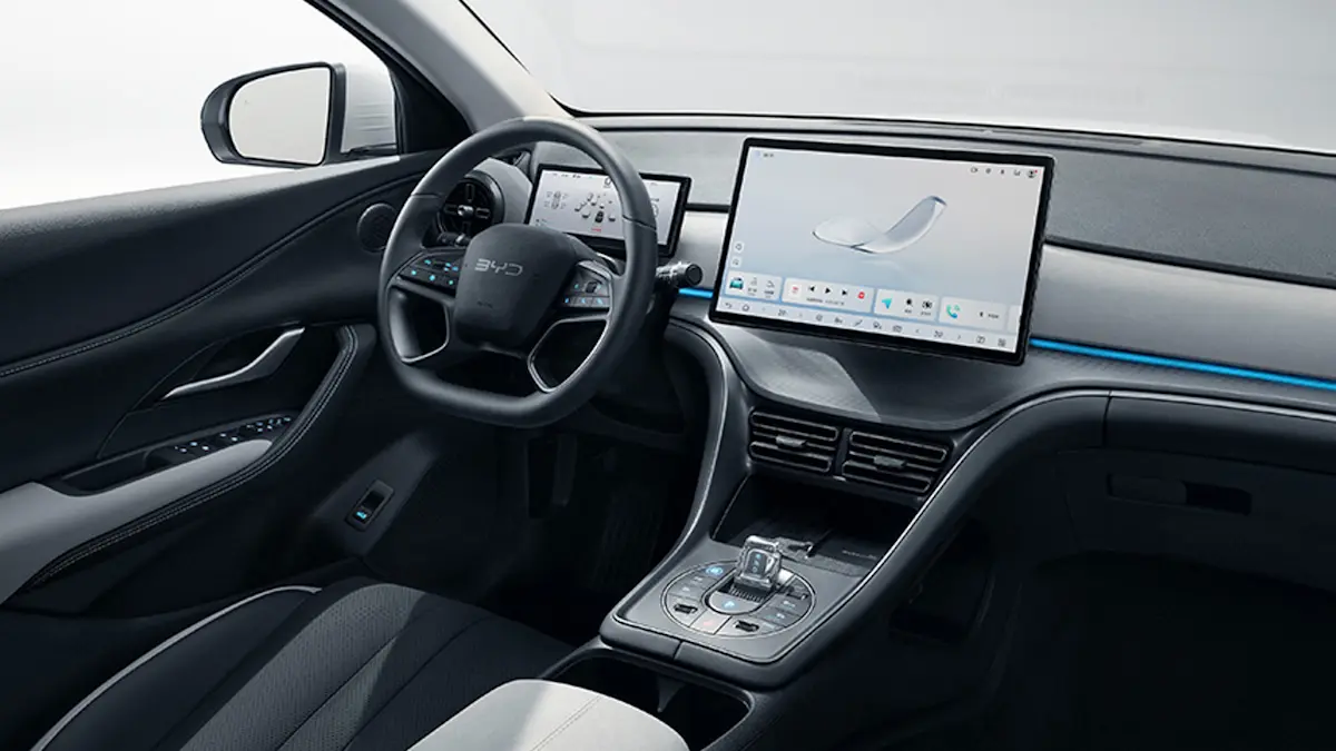 As lanternas traseiras dforam levemente atualizadas, assim como o para-choque. Como virou marca nos BYD reestilizados, a coluna D deixou de ser uma cobertura plástica cinza e ganhou contornos pretos. Por dentro, ele tem painel mais horizontalizado e acabamento escurecido mais elegante, além de volante de Yuan Pro.