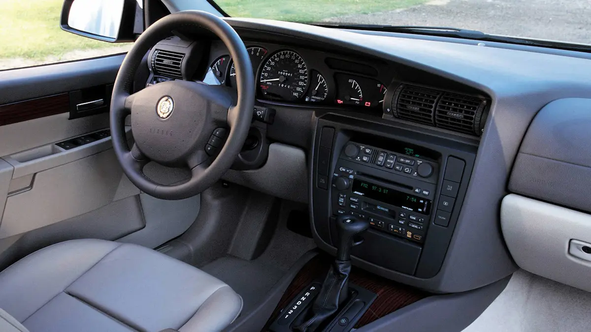 Esse visual permaneceu até 2001, quando o Catera recebeu uma grade frontal menor e mais quadrada, novo capô e lanternas traseiras tão genéricas que poderiam ser usadas em qualquer carro. Só que, com ou sem reestilização, o que entregava que ele não era um Cadillac de verdade era o interior.