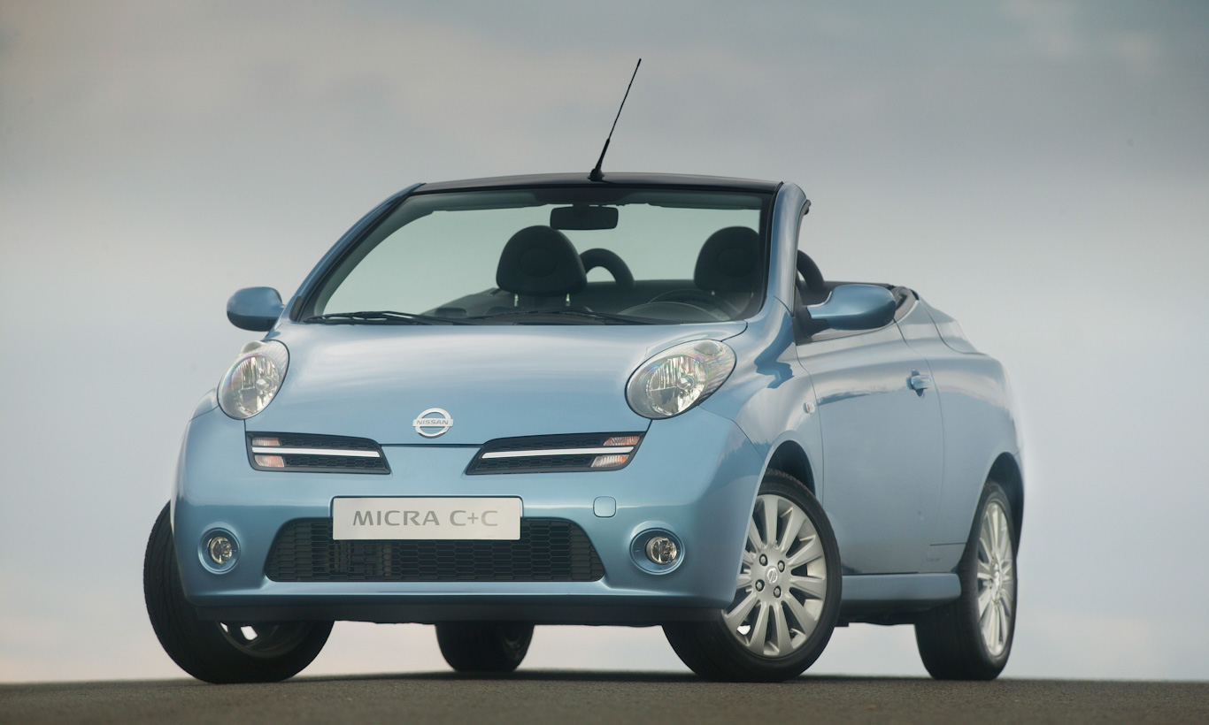 Geração anterior à oferecida no Brasil, mas com diversos elementos visuais semelhantes, o Nissan March teve versão conversível. Chamado de Micra C+C na Europa, o pequenino foi apresentado como conceito em 2002, mas só chegou às lojas em 2005 após a primeira reestilização do hatch.