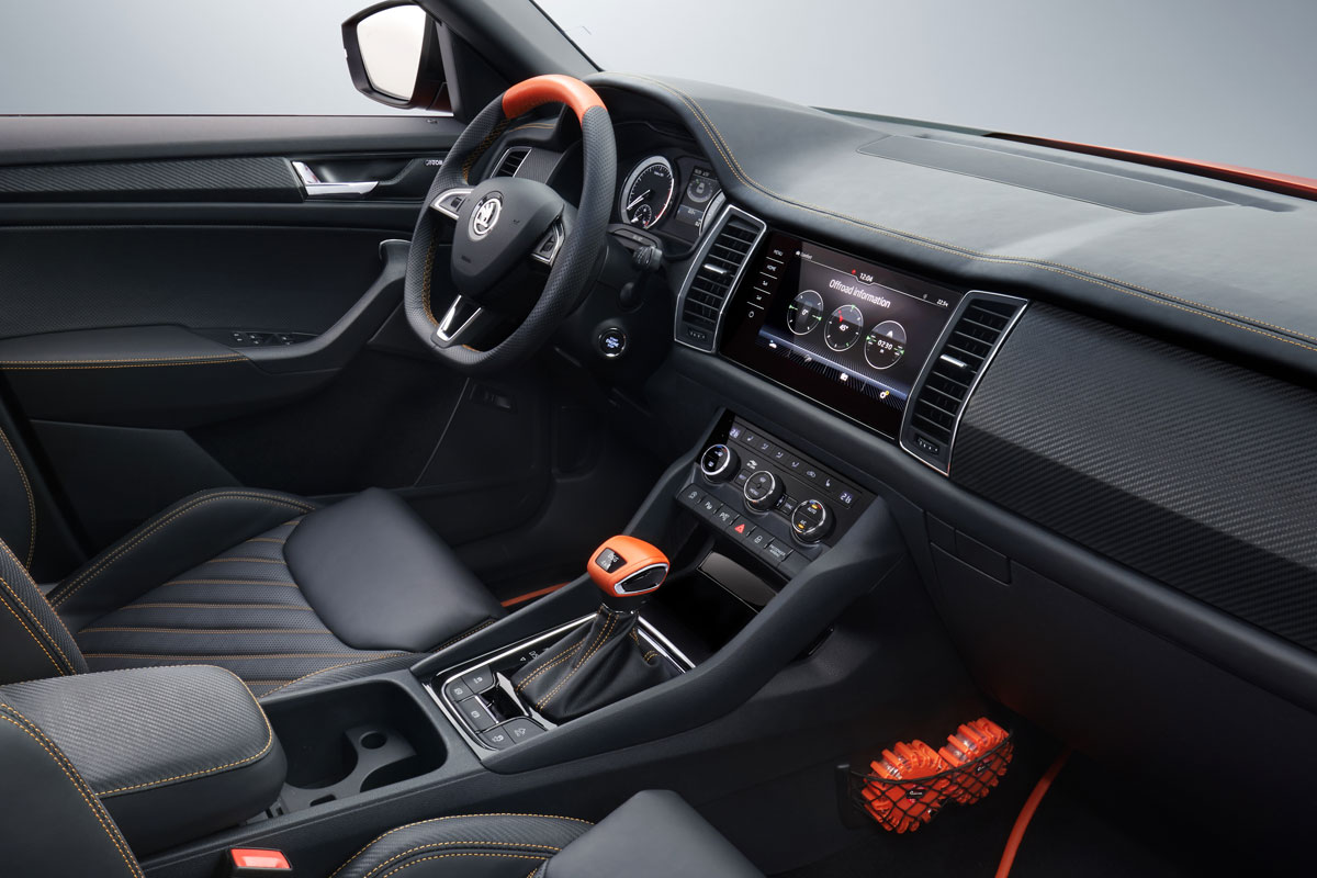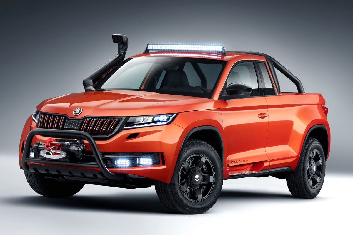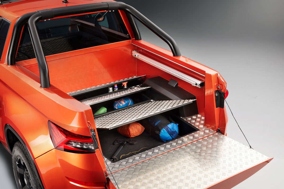Visualmente, o conceito utiliza grande parte do visual do Kodiaq (basicamente um “Tiguan” da marca Skoda), mas com apenas duas portas e uma enorme caçamba funcional. A dianteira traz o mesmo visual do SUV feito pela marca da República Tcheca.