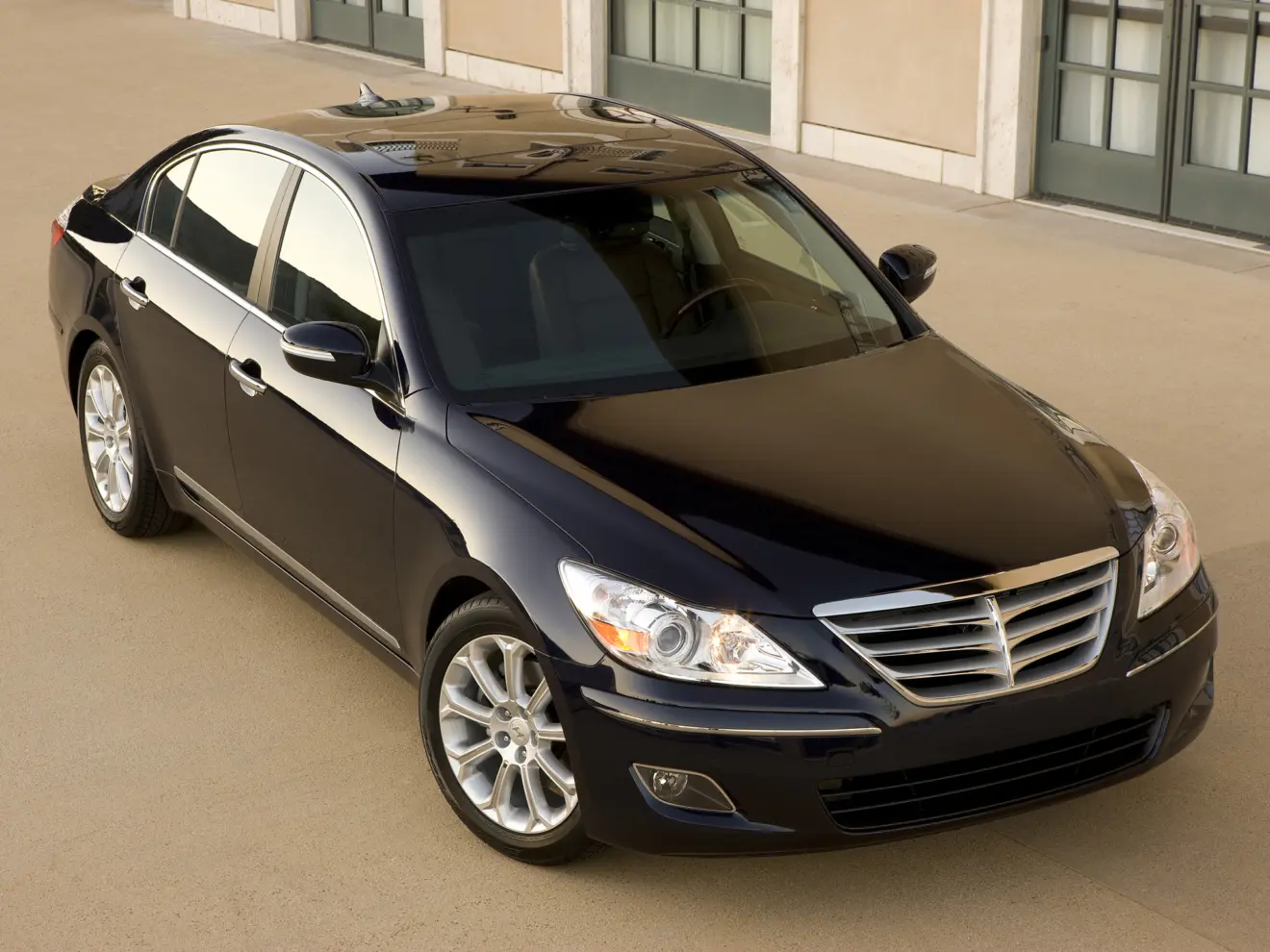 O sedan requintado do Hyundai já tinha grade horizontal cromada, capô grande e faróis compridos. Dos lados, as atenções se voltam para as rodas de 18 polegadas com desenho imponente. Atrás, o Genesis tinha ar mais conservador, com lanternas amplas e duas saídas de escapamento.