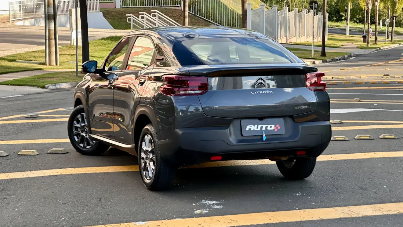A tampa do porta-malas é grande e as lanternas com desenho que lembram a letra C compõe o desenho. Essa versão sempre esteve no catálogo e tem como foco mostrar o novo posicionamento da Citroën no mercado. Sobre tamanho, o Basalt Feel dispõe de 4,34 m de comprimento, 1,74 m de largura, 1,58 m de altura e 2,64 m de entre-eixos. O porta-malas leva 490 litros.