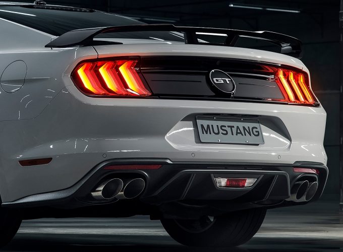 Bem menos funcionais, as luzes embutidas nos retrovisores que se acendem para iluminar o chão servem, apenas, para dar uma pitada extra de charme ao esportivo. Em LED, iluminação reflete o logotipo do Mustang.