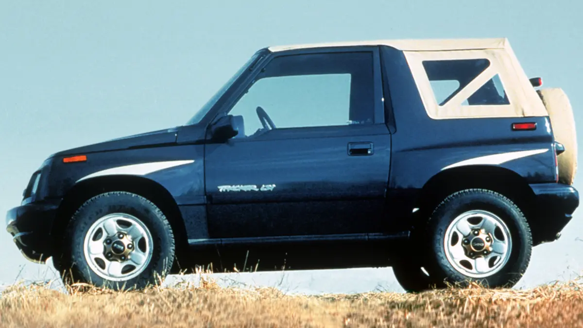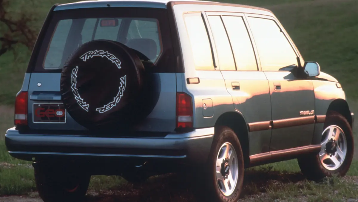 Já o crescente mercado de SUVs foi atendido pelo Geo Tracker, nome que parece muito comum para nós brasileiros hoje. Isso acontece porque a GM também o vendeu por aqui como Chevrolet Tracker a partir da segunda geração do modelo. Afinal, ele não passava de um Suzuki Vitara com o logotipo da Geo estampado na grade e no volante.
