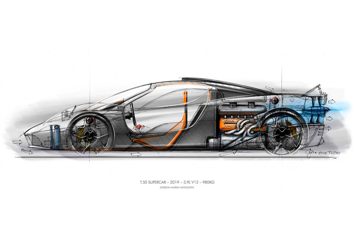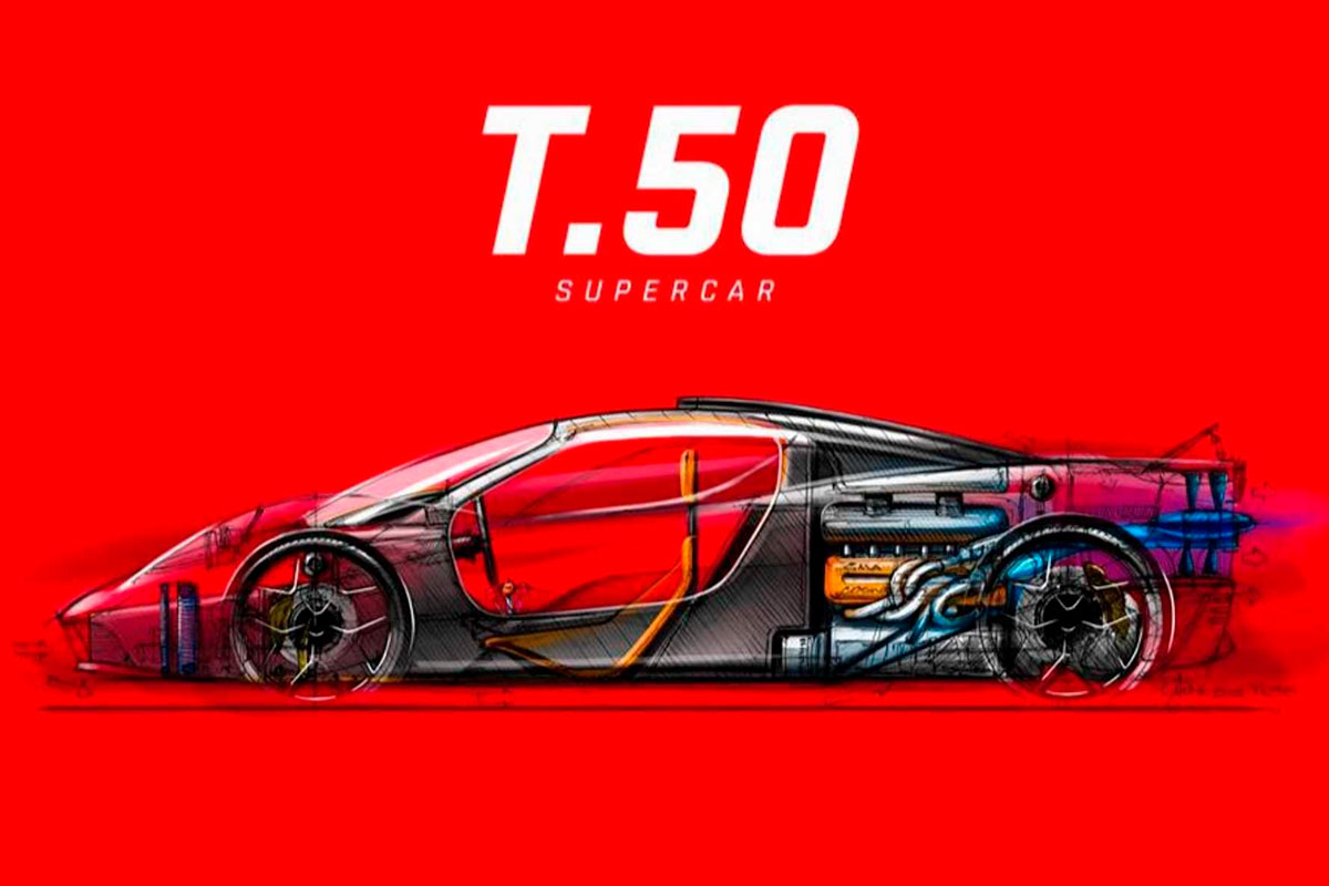 O nome do hipercarro T.50 será para homenagear os 50 anos de carreira de Murray – e o sue cockpit terá o mesmo layout de 3 lugares da F1, com o motorista sentado no centro, e dois passageiros sentados nas laterais, recuados um pouco para atrás.