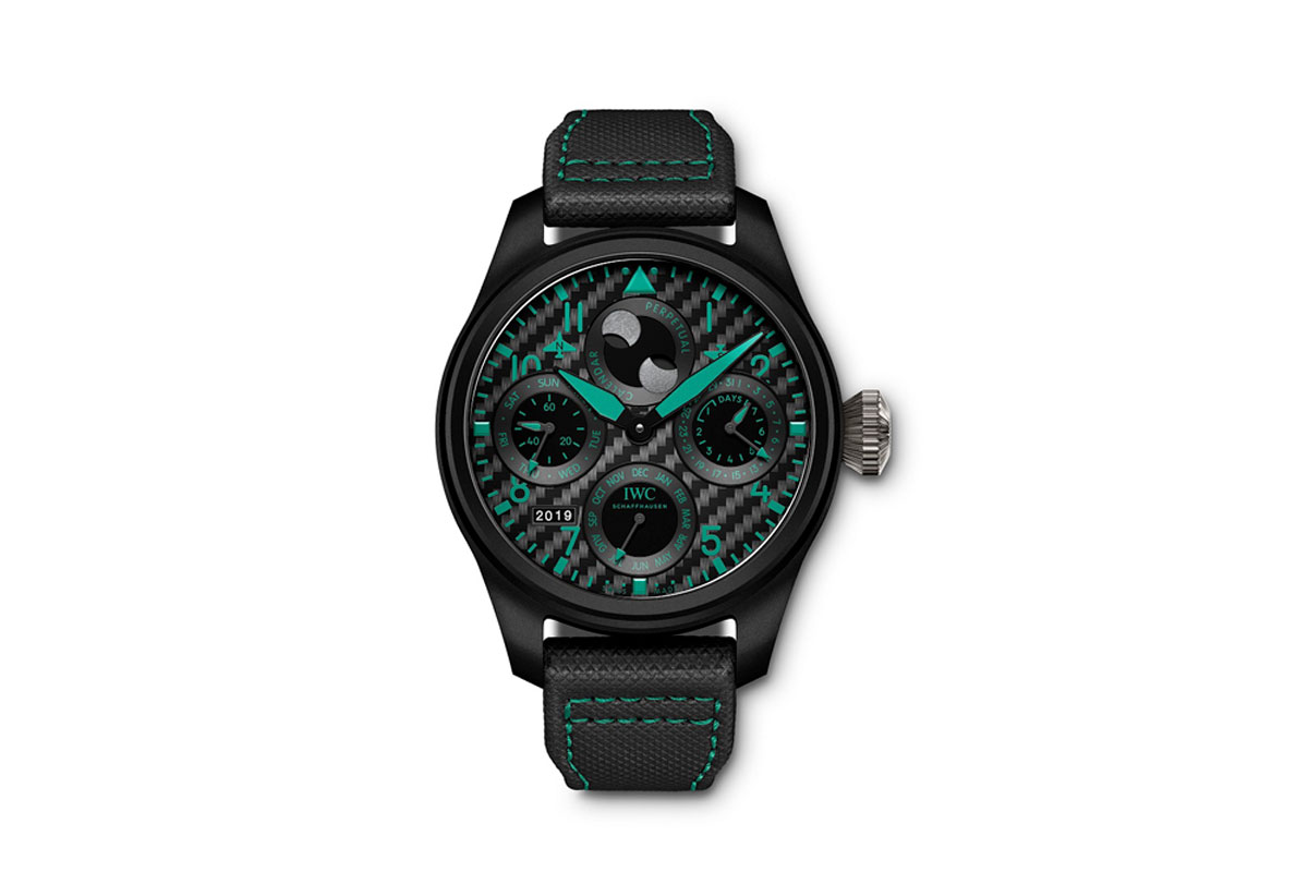 Os relógios contam com um exclusivo design em preto brilhante com detalhes em verde esmeralda, que foi inspirado nas cores da equipe seis vezes campeã mundial e parceira da IWC. O Big Pilot’s Watch Perpetual Calendar Edition “Mercedes-AMG Petronas Motorsport” é limitado à apenas 10 unidades.