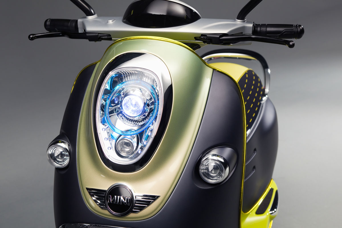 Já no design, a pequena scooter traz todo o charme dos carros da Mini, como o grande farol dianteiro inspirado no Mini Countryman da primeira geração. Já a traseira tem como inspiração os modelos mais antigos da marca britânica.