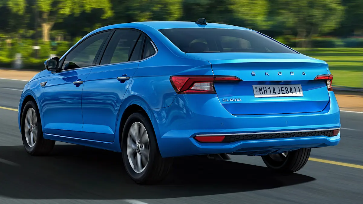De traseira, o Slavia não esconde tanto que é um Virtus. O desenho das lanternas é idêntico na parte que fica na carroceria, mudando somente o desenho interno. Já a tampa do porta-malas é a mesma, só que como as lanternas do Skoda são menores, ele parece um carro mais largo. O logotipo da marca é suprimido em favor do nome Skoda.
