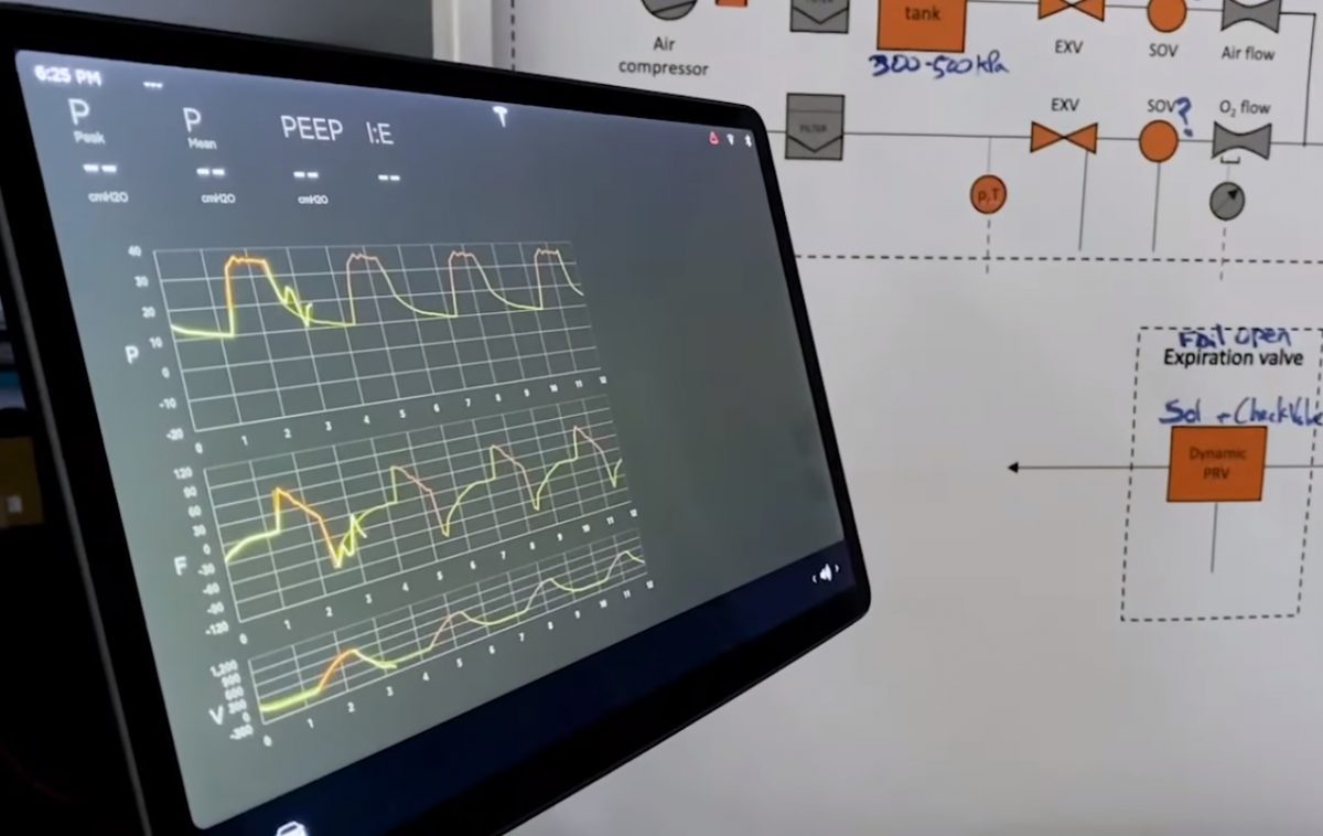 Para o respirador mecânico, foram utilizados componentes como o computador do sistema multimídia do Model 3, além da famosa tela vertical sensível ao toque (touch screen) que, nos carros da marca, são responsáveis pelos comandos multimídia, ar-condicionado, entre outros. No caso da aplicação no respirador mecânico, a tela exibe dados como pressão, fluxo e volume de ar.