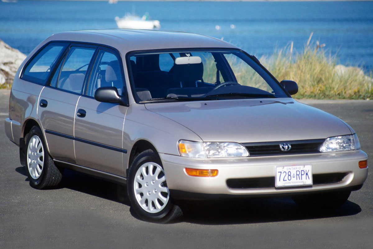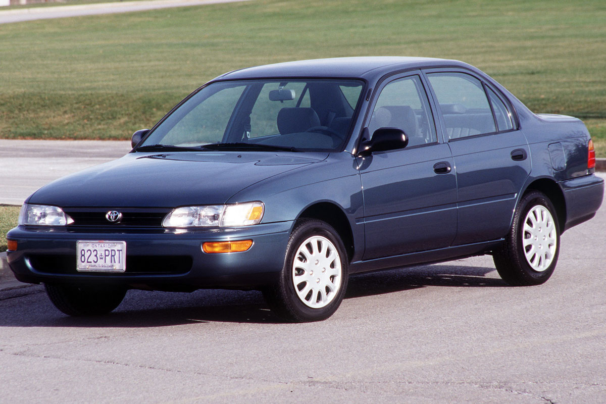 A sétima geração foi introduzida na carroceria sedã e ostentava um visual moderno para a época com faróis retilíneos e carroceria mais arredondada, como era de costume nos modelos vendidos nos anos 1990. O nosso primeiro Corolla tinha 4,27 metros de comprimento e 2,46 metros de entre eixos. As opções de motores incluíam o 1.6 nas versões DX e o 1.8 de 117 cavalos na versão LE. O modelo ainda podia contar com câmbio automático, de quatro velocidades, então algo raro nos carros vendidos aqui.