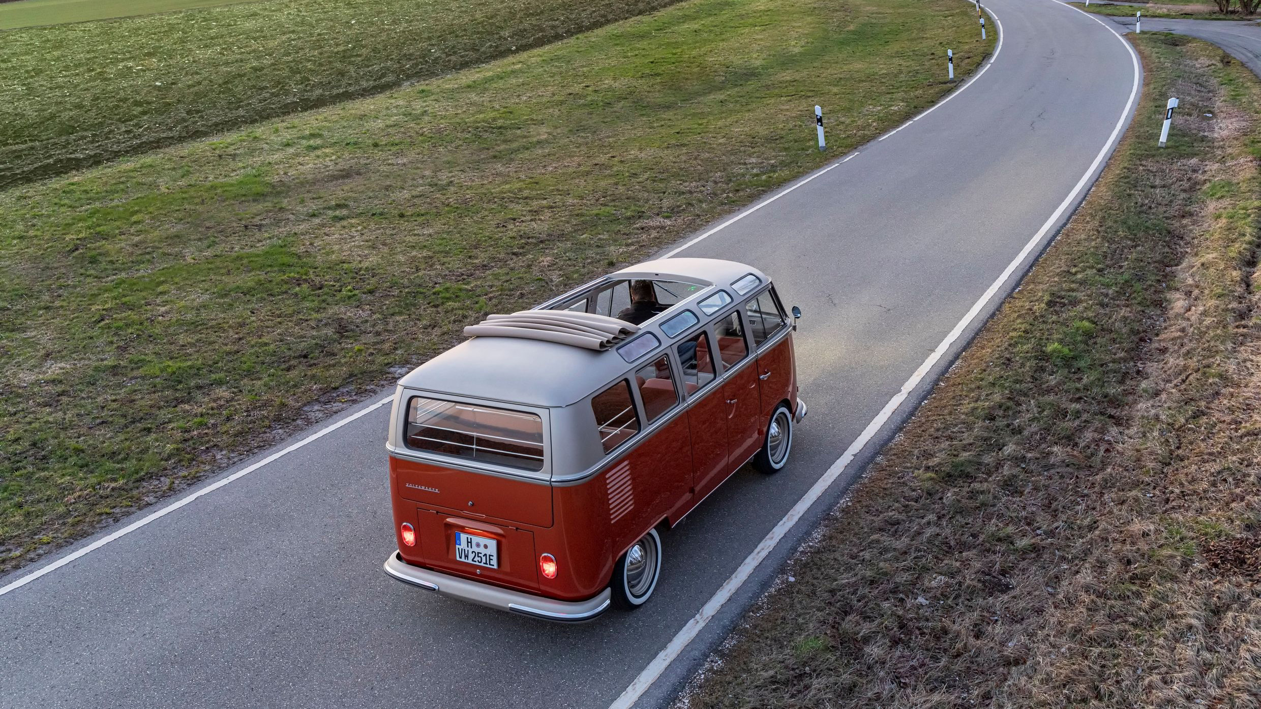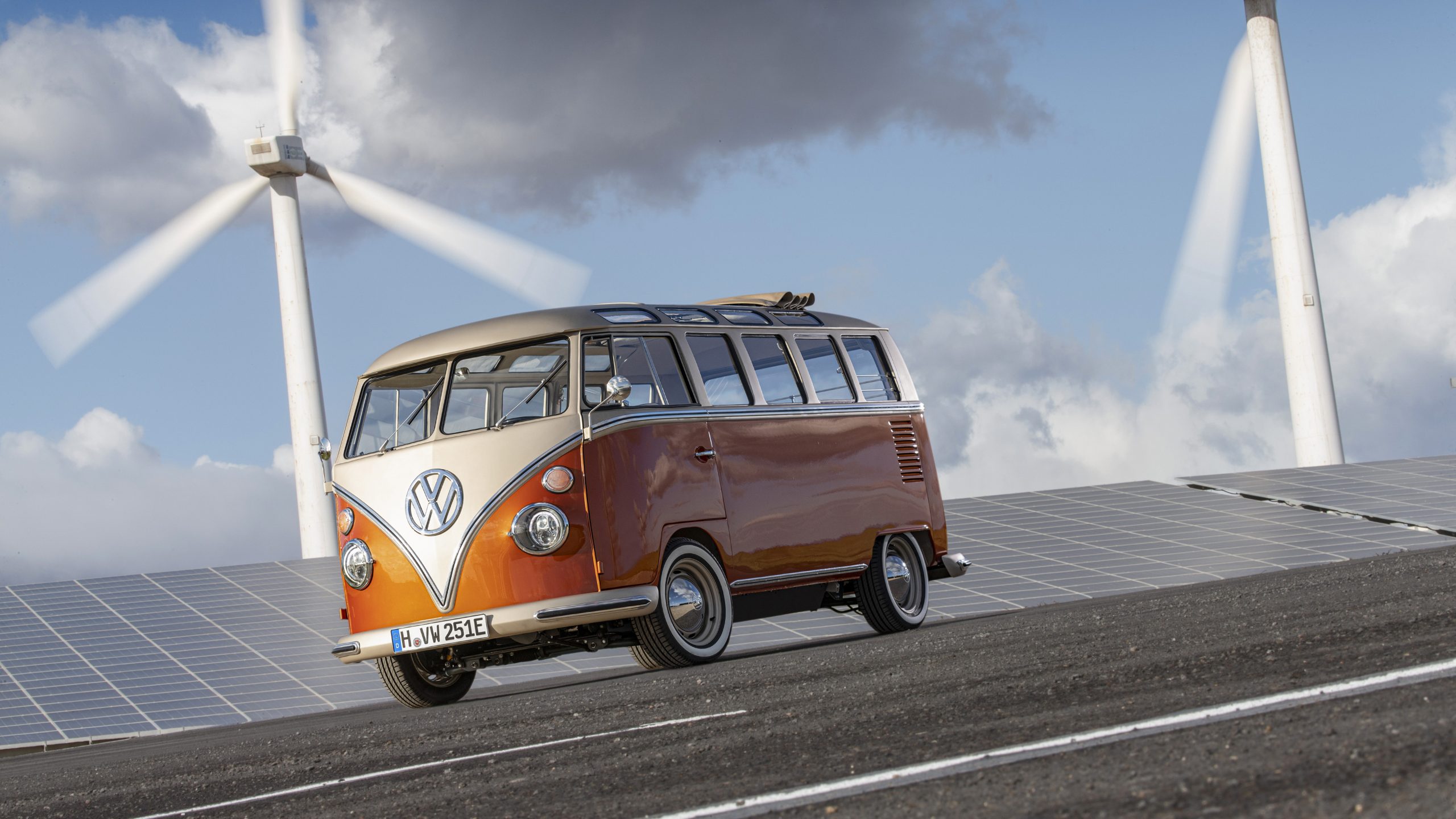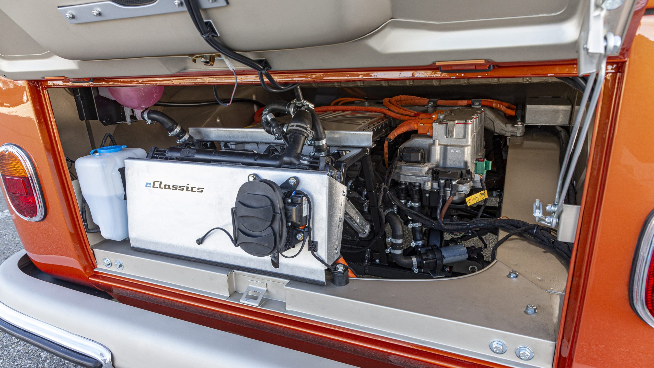 Aqui o trabalho consistiu em tirar o propulsor a gasolina, de 43 cv, da perua e, no lugar, incluir um elétrico de 61 kW e 83 cv. Isso gerou autonomia de 200 quilômetros à e-Bulli. Câmbio com novo seletor e torque extra (21,2 kgfm, antes, 10,6 kgfm) são algumas das novidades do modelo, que tem baterias de íons de lítio, suspensão reforçada e velocidade máxima de 130 km/h. Por fora, a ‘corujinha’ traz a pintura saia-e-blusa e, da porta para dentro, o desafio foi manter o estilo clássico da Kombi original – com sucesso!