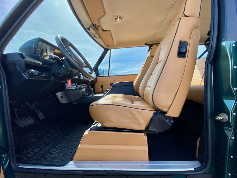 Já o visual se destaca pela conservação da originalidade do modelo. As únicas mudanças são: pintura verde Jade na carroceria; faróis de LED; e os faróis auxiliares, da marca Hella. As rodas são originais, mas ganharam novos pneus. Pulando para a cabine, o trabalho foi totalmente refeito. Tem revestimento em couro sintético bege com costuras pretas nos bancos e painéis das portas. E aí, curtiu o projeto?