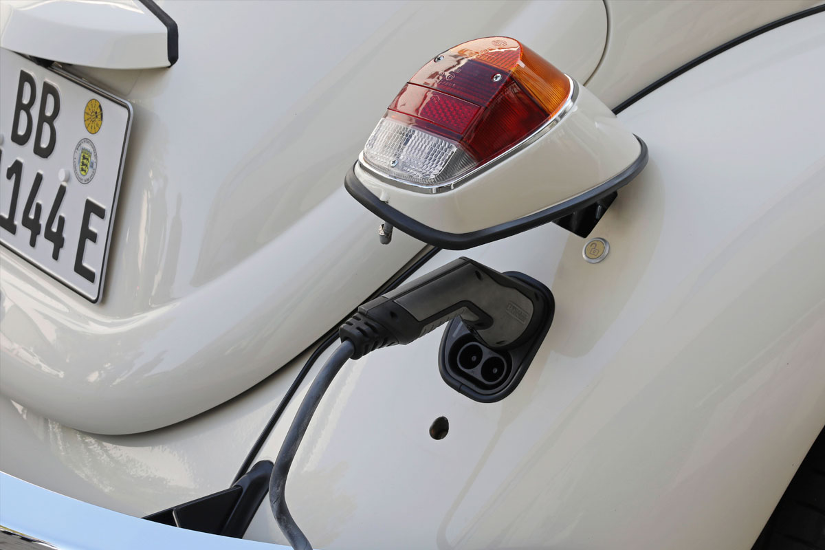 A tomada de recarga das baterias fica curiosamente debaixo da lanterna traseira direita, conferindo assim charme e um certo toque de nostalgia para o modelo. A Volkswagen garante que o sistema de carregamento é compatível com estações de carregamento rápido. Dessa forma, em uma hora é possível obter carga suficiente para percorrer mais 150 km. A Volkswagen só não confirmou se alguma unidade vai estar à venda.