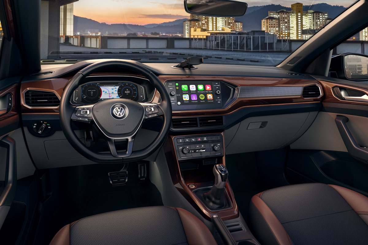 T-Cross 200 TSI Automático (R$ 94.490): os mesmos da versão manual, adicionando a transmissão automática de 6 marchas, controlador de velocidade e central multimídia Composition Touch com tela de 6,5 polegadas.
