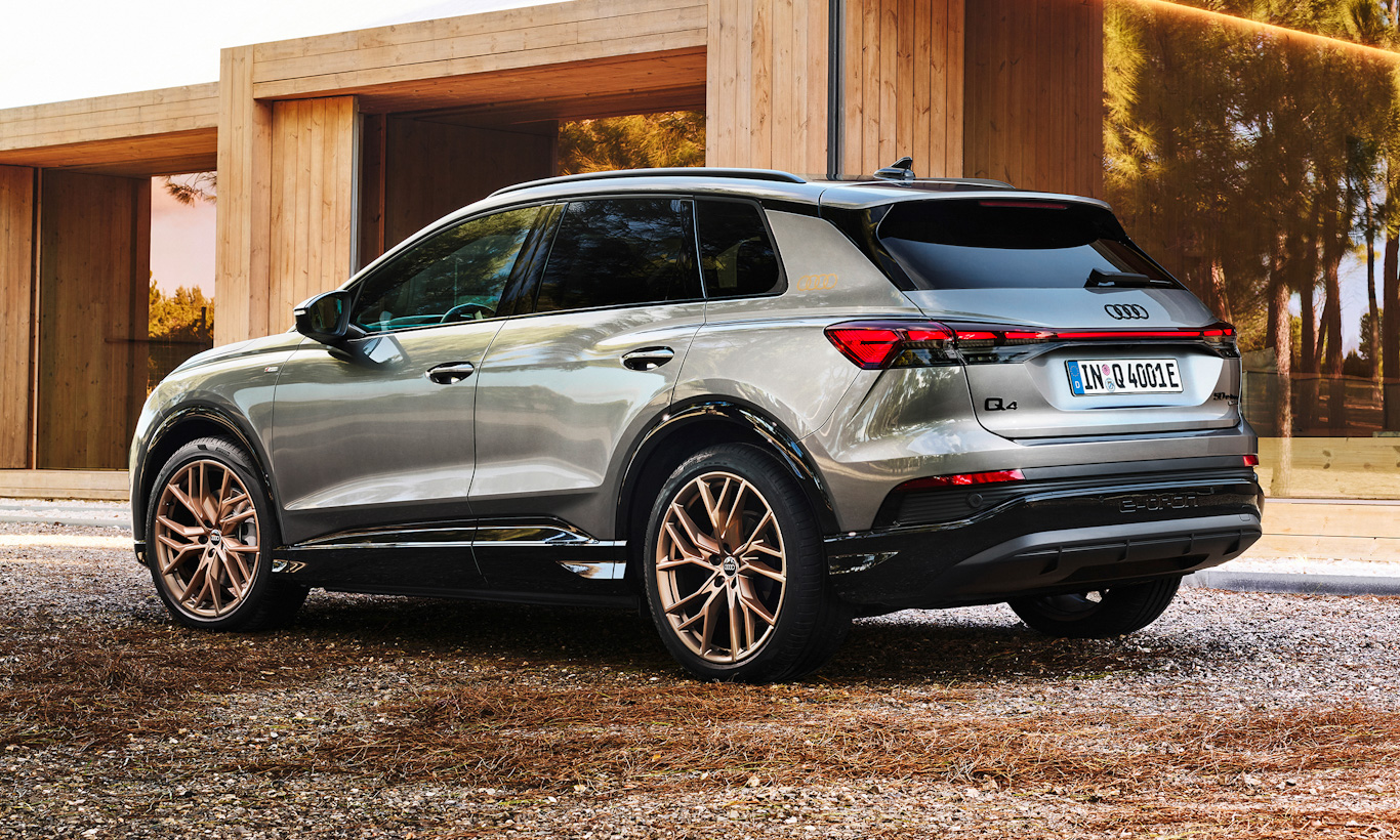 Esteticamente o Q4 é um Audi em sua pura essência, mas já começa a mostrar outra face da linguagem visual da marca. Ele tem carroceria visivelmente mais arredondada que outros modelos da marca, remetendo aos primeiros Audi TT, em especial na curva do teto do Q4 Sportback.