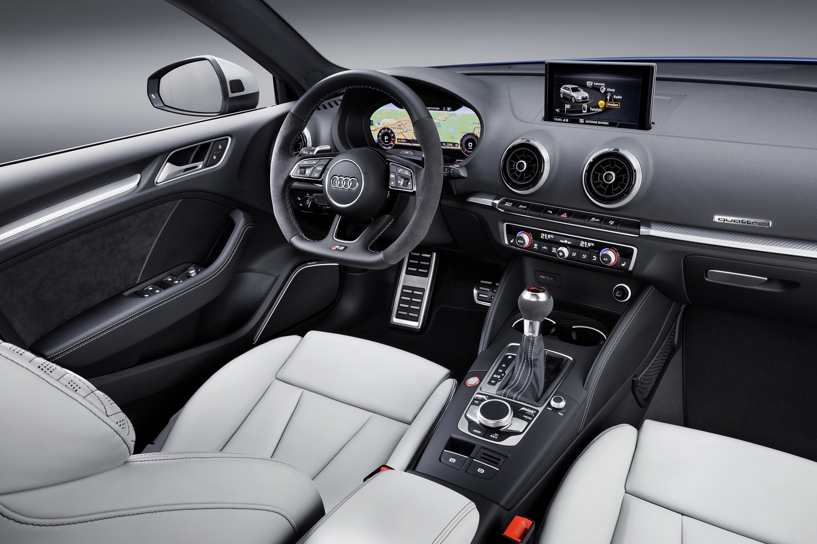 Assim como as versões comuns da família A3, o RS 3 adotou a reestilização com faróis recortados e grade retilínea, mas com uma dose de pimenta como manda a tradição da linha RS da Audi. Certamente, o destaque do RS 3 é o motor cinco cilindros turbo de 2,5 litros, com 33 cv a mais do que o anterior e que agora gera 400 cv, enquanto o torque fica em 48,9 kgfm entre 1.700 rpm e 5.850 rpm.