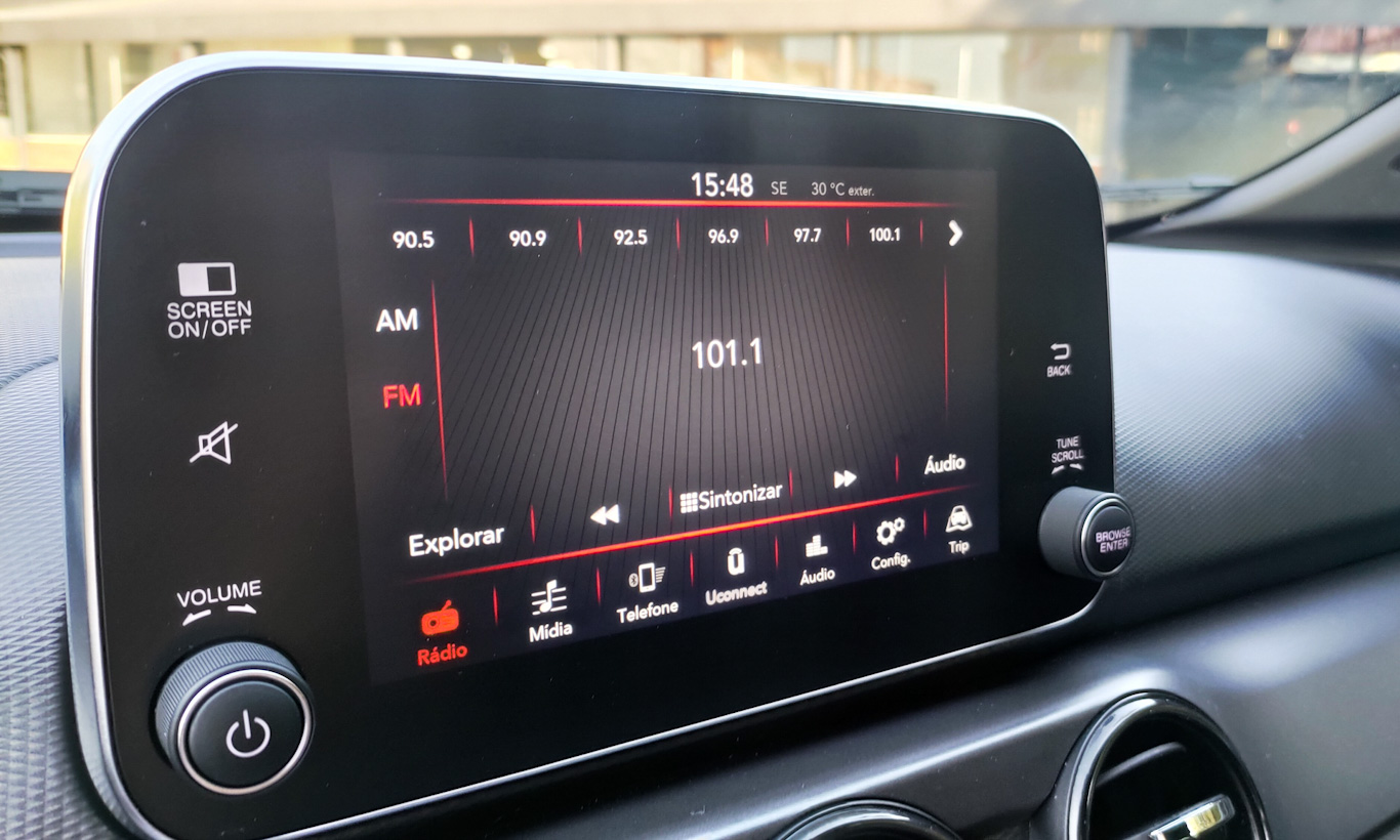 Por falar na central, ela tem tela de definição relativamente boa e conta com funções de fácil acesso. Android Auto e Apple CarPlay são conectados por fio, mas a Fiat deixou um espaço reservado para o celular, deixando toda operação mais prática. Comandos de som atrás do volante também ajudam no uso da central.