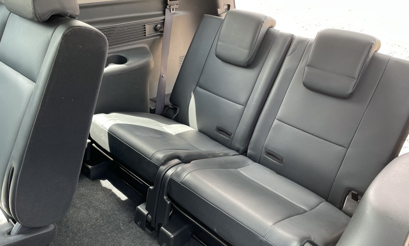 Para quem senta na terceira fileira, o acesso é bem facilitado. Basta puxar a alavanca nas costas do banco do meio que o assento se dobra para a frente e, com a própria força do movimento, já levanta a parte posterior do assento para permitir a entrada com conforto. Há tempos não via um sistema tão fácil.