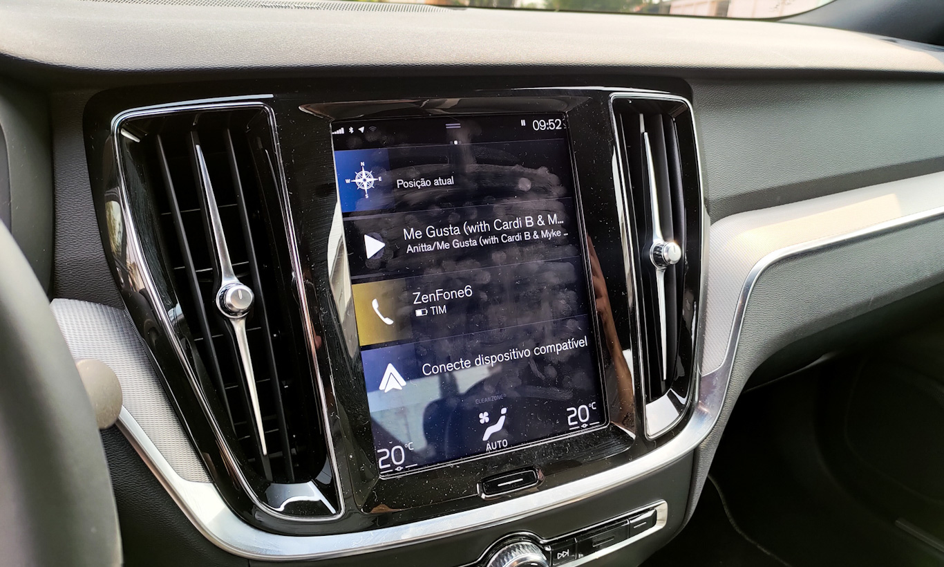 Há também painel de instrumentos totalmente digital com gráficos elegantes e informações completas, salvo pela terrível mania da Volvo em deixar o consumo em litros por 100 km ao invés do clássico km/l que usamos no Brasil.