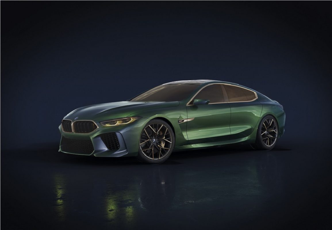 Agosto é o mês de estreia do BMW M8 Gran Coupé First Edition no Brasil. Baseado no M8 Gran Coupé Competition, o novato chega com diferenciais exclusivos. Tem pintura Aurora Diamant Green Metalic (esverdeada, que muda de acordo com a luz), acabamento externo em GoldBronze e faróis BMW Laserlight, com feixe amarelo.