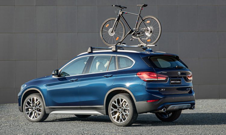Baseado na versão X-Line Plus, o BMW X1 Outdoor traz capa dos retrovisores em fibra de carbono da linha M Performance. Além disso, vem de série com rack de teto com suporte para bicicleta, mas a bike da BMW mostrada nas imagens não vem junto do SUV compacto. Por dentro ele traz tapete de borracha na cabine e no porta-malas.