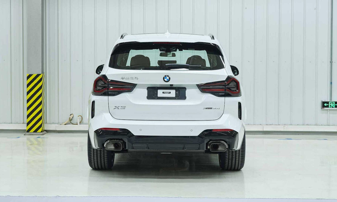O para-choque ganhou entradas de ar mais angulosas e agressivas, com destaque para o uso de plástico preto brilhante, tanto no iX3 quanto no X3 com pacote M. Na traseira, as lanternas receberam nova organização dos LEDs e lentes escurecidas. Há uma falsa saída de ar no para-choque e novas saídas de escape.