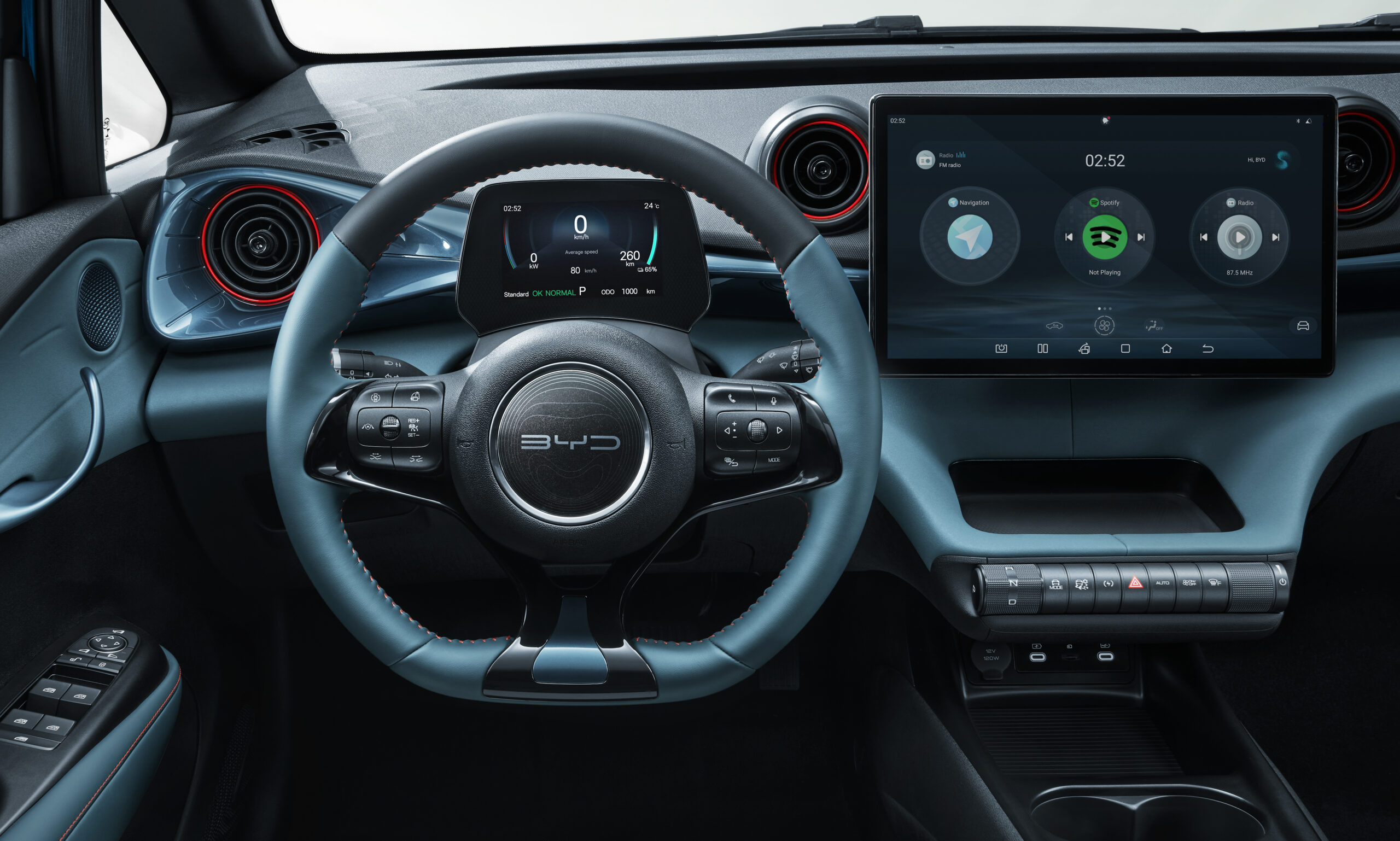 O BYD Dolphin Plus tem rodas de 17 polegadas, alerta de ponto cego no retrovisor, sensor de pressão dos pneus, bancos dianteiros com aquecimento e elétricos, piloto automático adaptativo, assistente de leitura de placas, recurso para carregar notebook, cafeteira ou outro acessório, central multimídia de 12,8 polegadas com Android Auto e Apple CarPlay e outros. O Dolphin Plus tem 4 cores: azul, preto, rosa ou branco com partes em cinza e custa R$ 179.800.