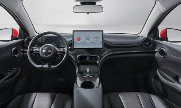 A cabine mudou, recebendo central multimídia rotativa, painel de instrumentos digital e o mesmo volante do Yuan Plus. A inspiração no SUV compacto elétrico da BYD também vem no desenho orgânico do painel. Só que no e2 todo o acabamento é feito em preto, já que ele foi pensado para famílias e taxistas. Não há previsão de vendas do modelo no Brasil.