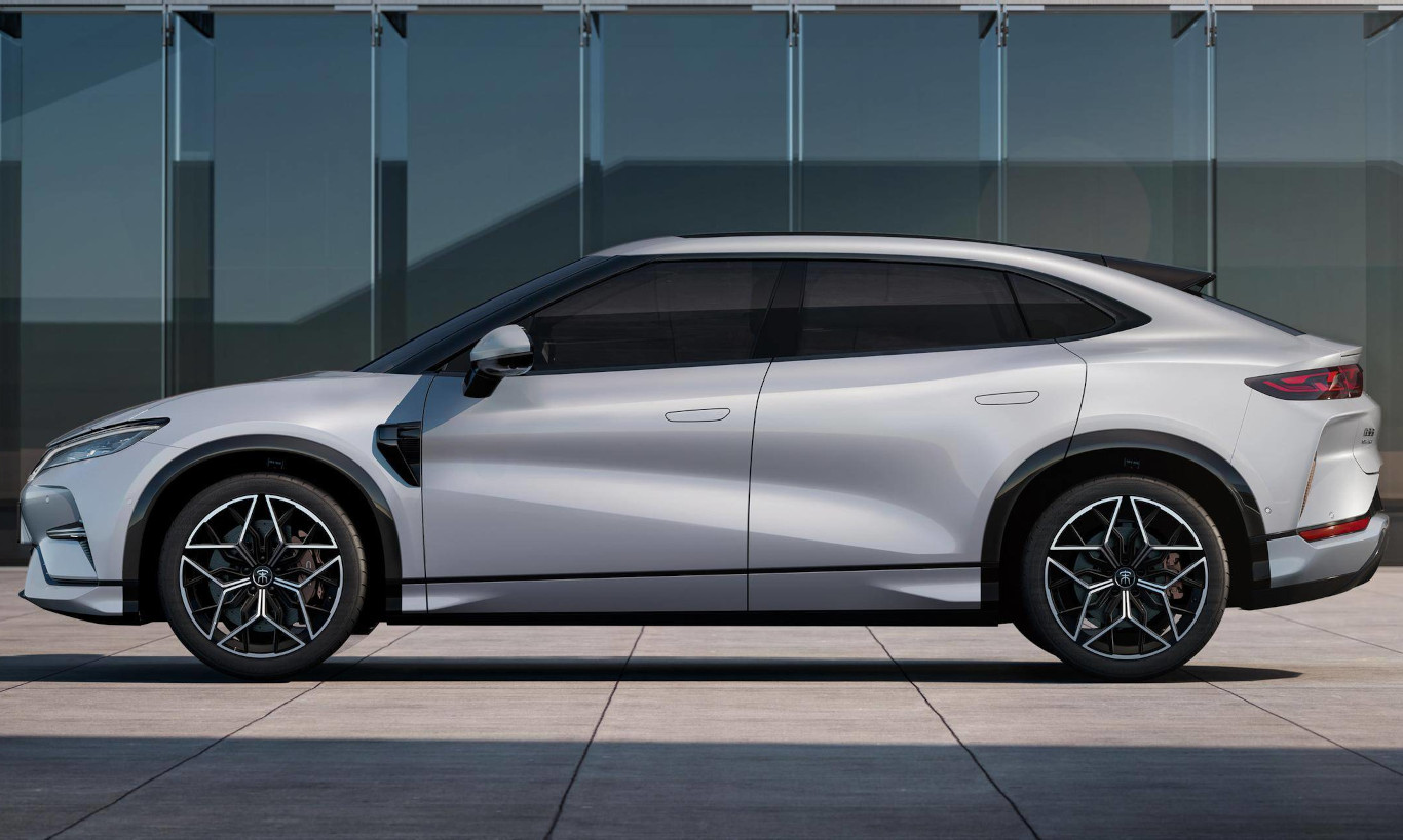 Além disso, o BYD Song L apresenta portas sem moldura, maçanetas ocultas e um aerofólio elétrico na traseira. As rodas têm um formato de estrela que se destaca no centro das rodas, que combinou com o carro.