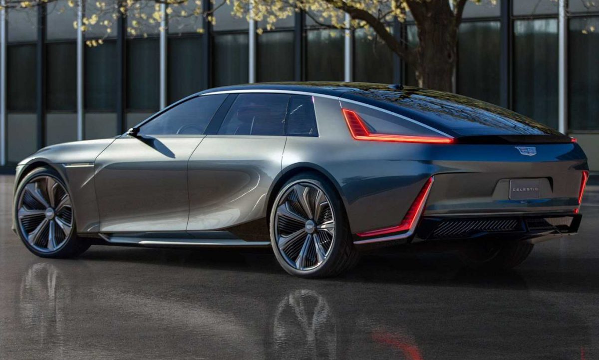 A traseira tem vidro bem inclinado, que dá ao Cadillac Celestiq um perfil diferente do comum nas ruas. A traseira é bem arrebitada, com a parte central onde está o logo em relevo, enquanto o para-choque fica para dentro. A lanterna é um grande L na coluna e que invade a lateral, sendo acompanhada por um friso de LED no para-choque – ousado é pouco para ele.