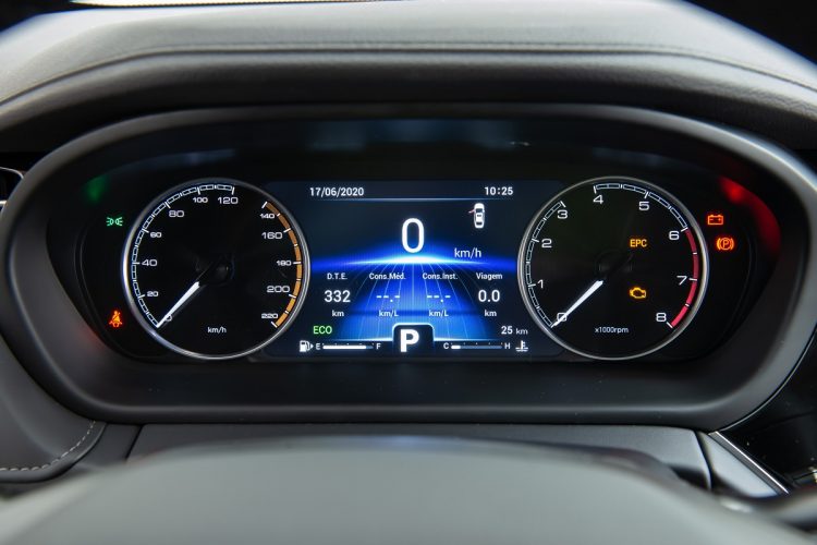No quadro de instrumentos, uma tela de LCD com 7″ exibe as informações do computador de bordo e, espalhadas pelo habitáculo, estão as três portas USB – duas na frente e uma atrás.