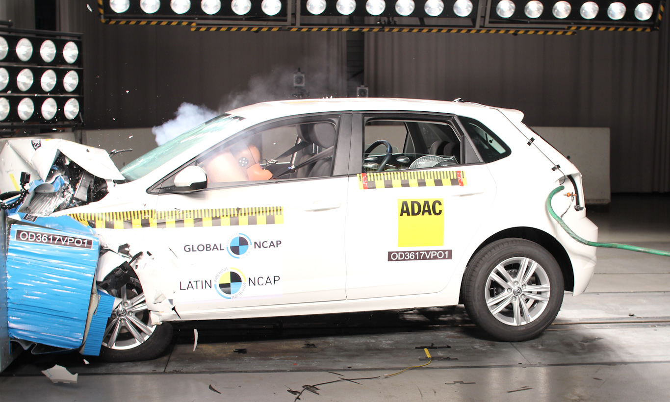 Irmão hatch do Virtus, o Volkswagen Polo teve nota praticamente igual à do sedã. Os 43 décimos que separam os dois modelos se dão por conta da menor deformação do teto, já que toda dianteira é idêntica entre eles. Em proteção infantil os 43 pontos foram repetidos.