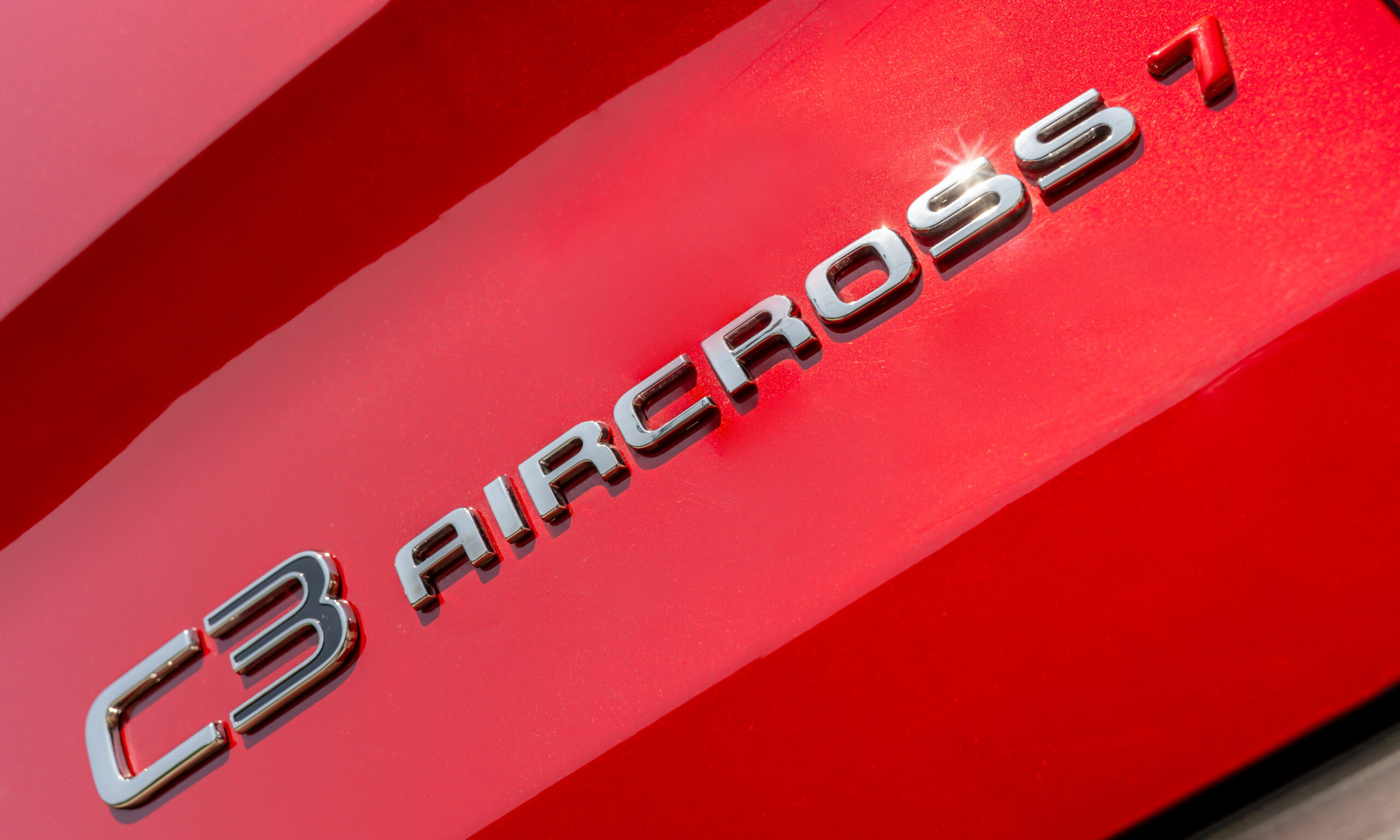 Na traseira, lanternas em formato de C interligadas por uma barra preta na versão Shine. A tampa do porta-malas é longa e o para-choque tem estilo mais parrudo. Nas versões de sete lugares, ele recebe o emblema Aircross 7 para o identificar.