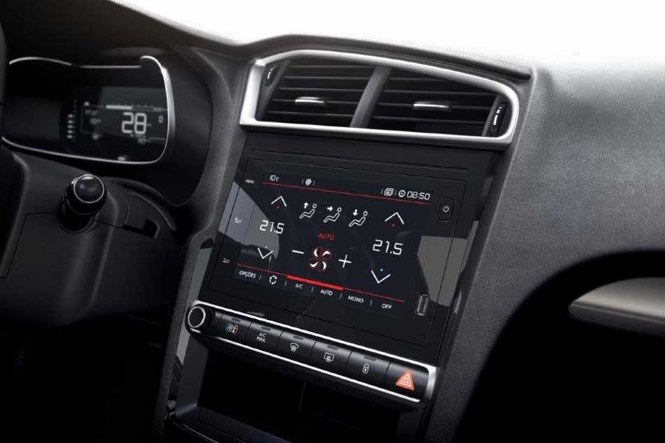 C4 Lounge Live (R$ 69.990): rodas de liga leve de 16”, painel digital, lanterna de led, central multimídia com tela de 7”, ar-condicionado digital de duas zonas, computador de bordo, assistente de partida em rampa, controlador de velocidade, faróis de neblina com luzes de conversão, alarme, vidros, travas e retrovisores elétricos. Há ainda controles de estabilidade e tração, volante com regulagem de altura e distância e sistema Isofix para fixação de cadeirinhas infantis.