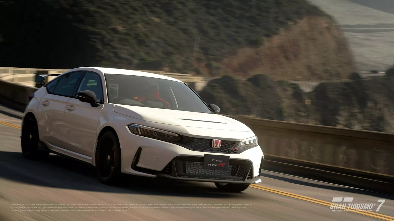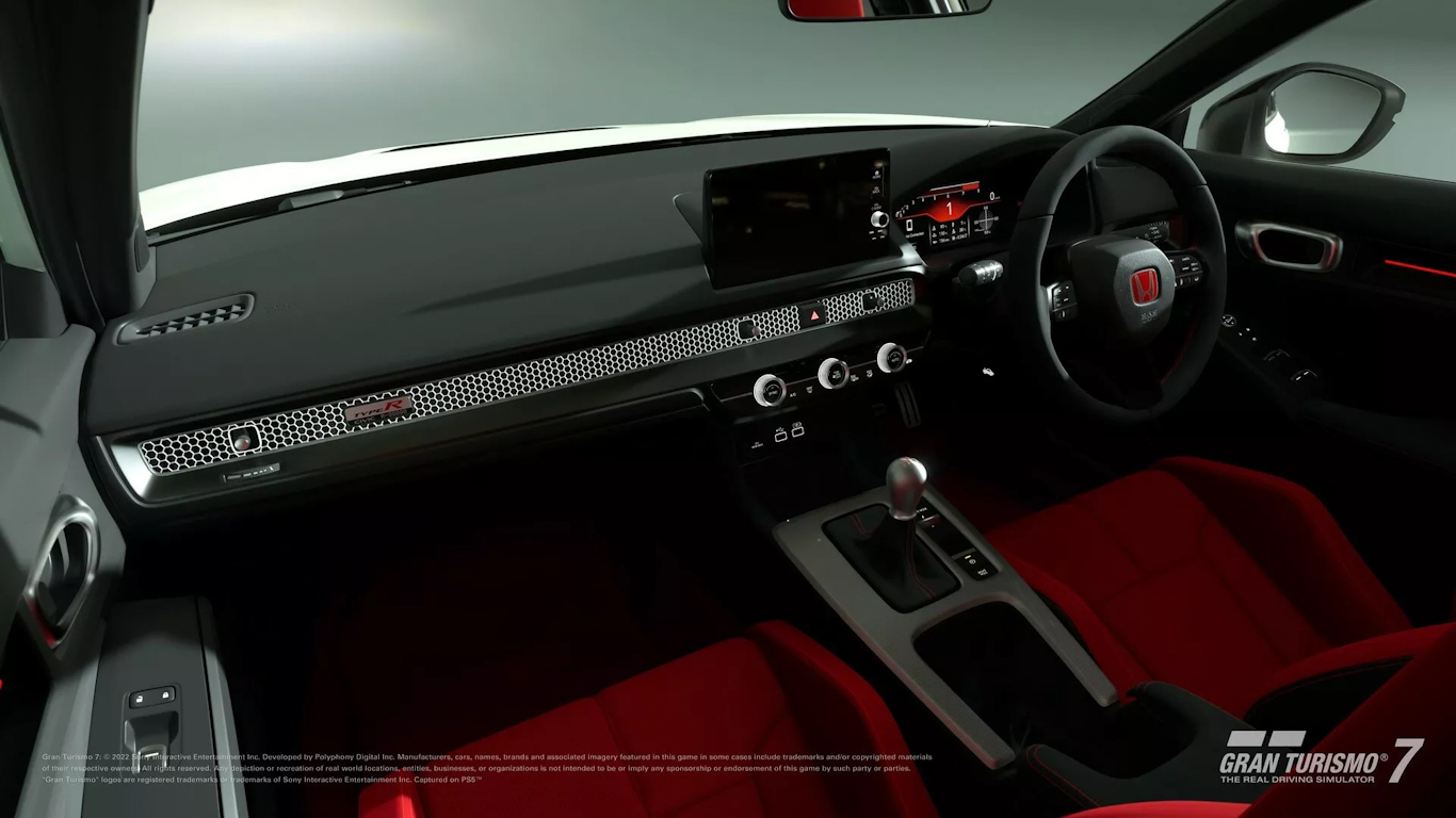Lançado há pouco tempo no Brasil, o Honda Civic Type R agora está disponível em Gran Turismo 7. Não foi revelada a especificação mecânica do modelo, já que a potência varia de acordo com o mercado, apesar de todos usarem motor 2.0 turbo e câmbio manual. No Brasil, ele tem 297 cv e 42,8 kgfm de torque, mas custa a partir de R$ 429.900.